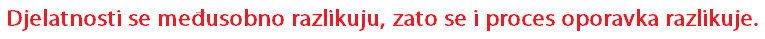 Kompletan proces oporavka je prilagođen pojedinačnoj djelatnosti